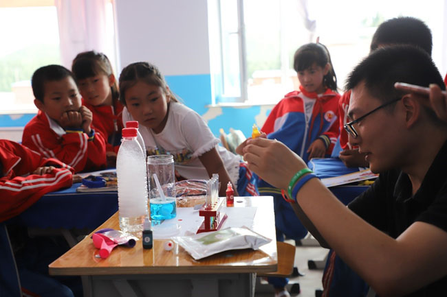志愿者們經過認真地備課,分成了電腦、讀書、美術、科學、生物、英語和心理等小組走進了課堂,通過寓教于樂的方式與同學們進行互動,引導孩子們體會學習的樂趣,為孩子們打開看世界的窗口,架起通向夢想的橋梁。