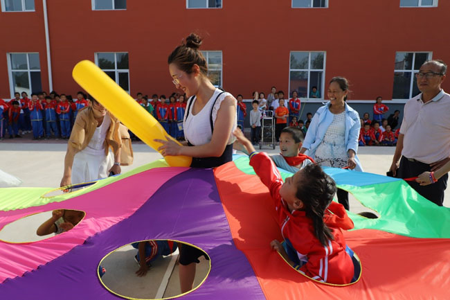 互動課堂活動結束后,一場別開生面的趣味運動會將整個活動點燃了所有人的熱情,孩子們把他們的感謝都融入其中,嘉賓和志愿者們也與孩子們融為一體,努力為自己團隊爭取勝利,現場高潮迭起,笑聲不絕于耳, 吶喊聲、喝彩聲回蕩在山間。
