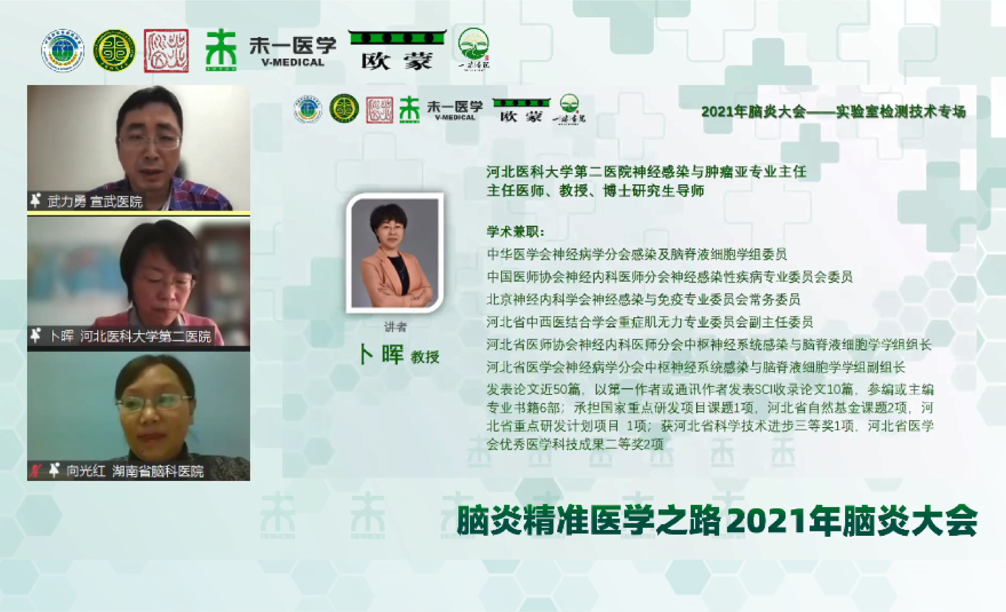 2019年腦炎大會首次舉辦,開啟“腦炎精準醫(yī)學之路”,2021腦炎大會延續(xù)“腦炎精準醫(yī)學之路”主題,神經免疫專場、感染與小兒神經專場已成功舉辦,12月19日腦炎大會第三專場-實驗室檢測技術專場圓滿結束,2021腦炎大會完美收官,累計8.4萬余人線上參與。本次會議由中國研究型醫(yī)院學會神經科學專委會主辦,北京協(xié)和醫(yī)院神經科、中國科學院承辦,未一醫(yī)學檢驗實驗室、歐蒙醫(yī)學診斷(中國)有限公司、一味書院協(xié)辦。來自國內的神經領域、檢驗領域及其他相關領域的醫(yī)學同仁線上齊聚,共同探討腦脊液細胞學、抗體檢測等檢測技術在臨床中的應用,促進臨床與檢驗之間的緊密合作,推動腦炎精準診療前行。