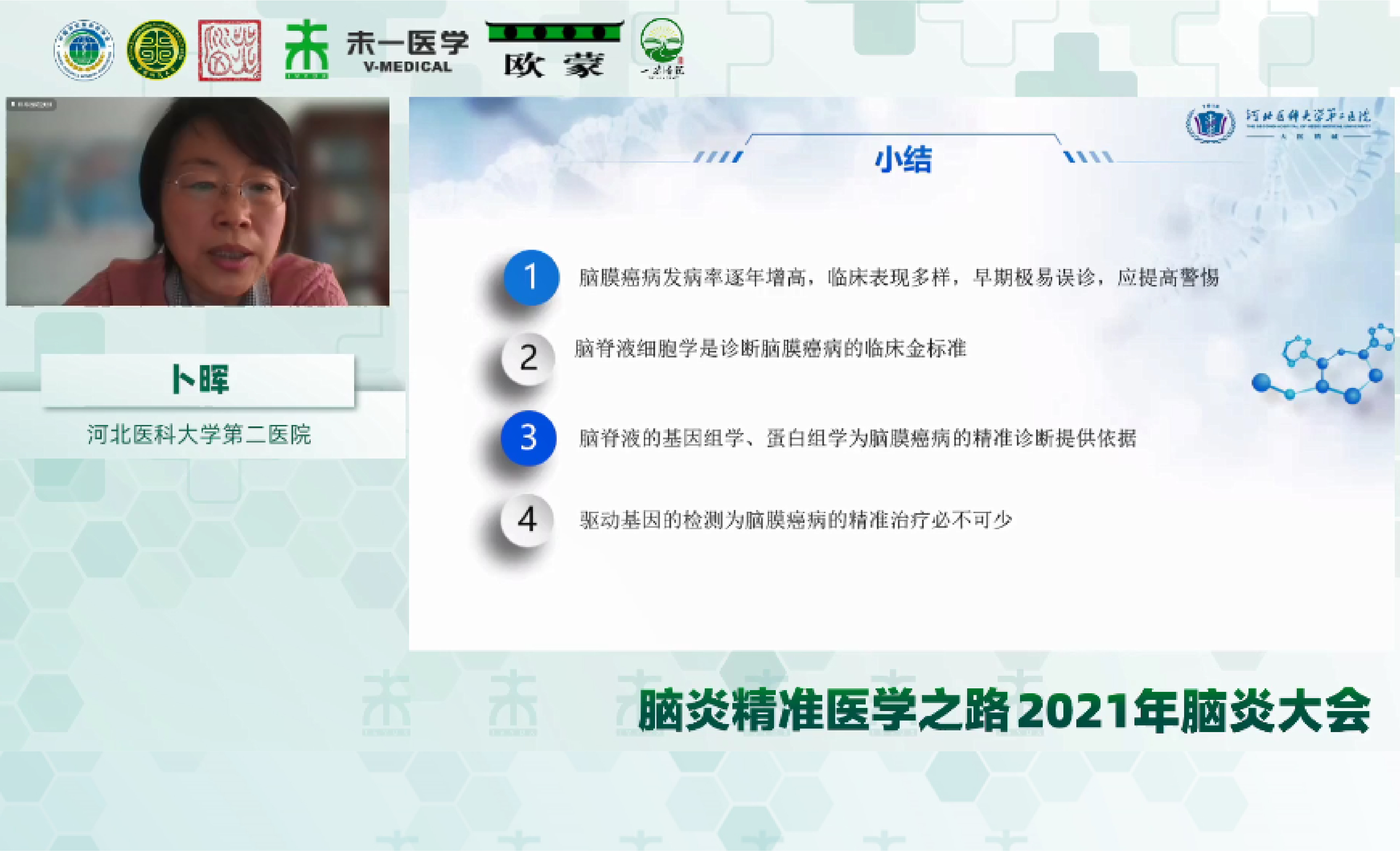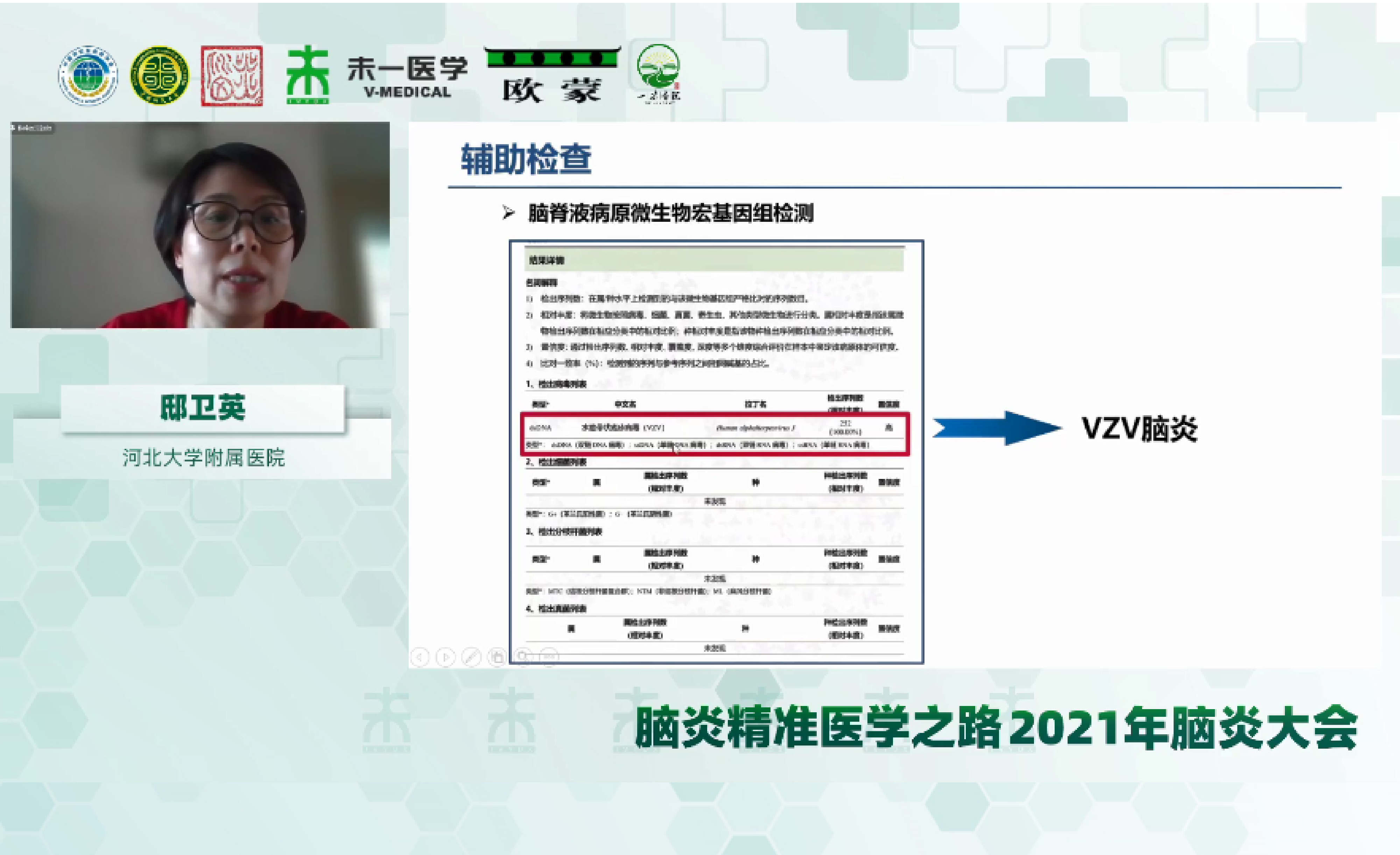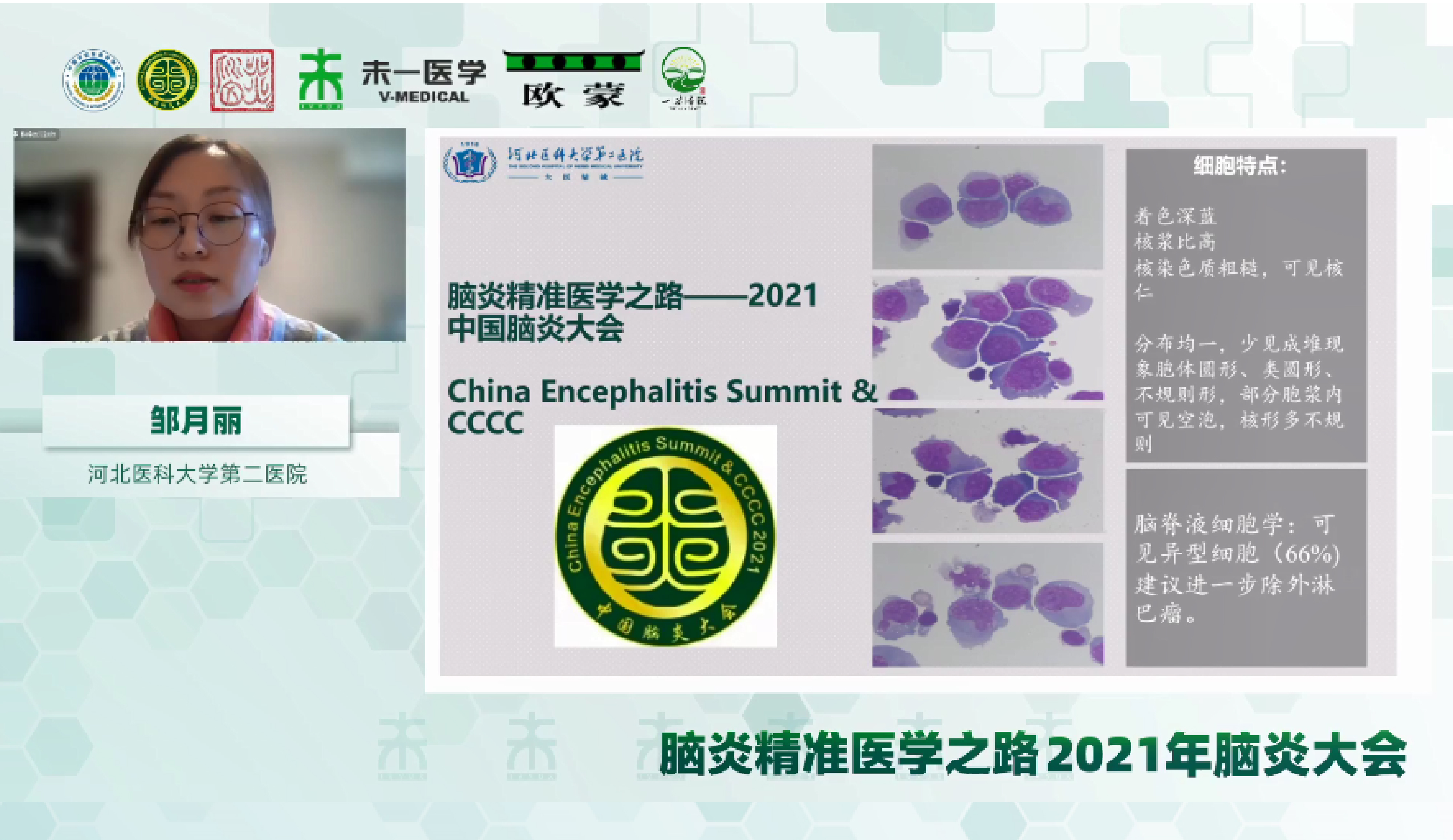 病例分享環(huán)節(jié),河北大學附屬醫(yī)院邸衛(wèi)英教授分享通過腦脊液二代測序檢測確診VZV腦炎的病例;河北醫(yī)科大學第二醫(yī)院鄒月麗教授通過腦脊液細胞學檢測發(fā)現(xiàn)異型細胞,最終確診為原發(fā)性中樞神經系統(tǒng)彌漫大B細胞淋巴瘤;赤峰學院附屬醫(yī)院喬小東醫(yī)生分享病例的患者腦脊液細胞學檢測可見腫瘤細胞,最終確認為腦膜癌病。武漢大學中南醫(yī)院徐艷教授、南方醫(yī)科大學南方醫(yī)院胡亞芳教授、赤峰學院附屬醫(yī)院趙偉麗教授作為病例分享環(huán)節(jié)的主持嘉賓。