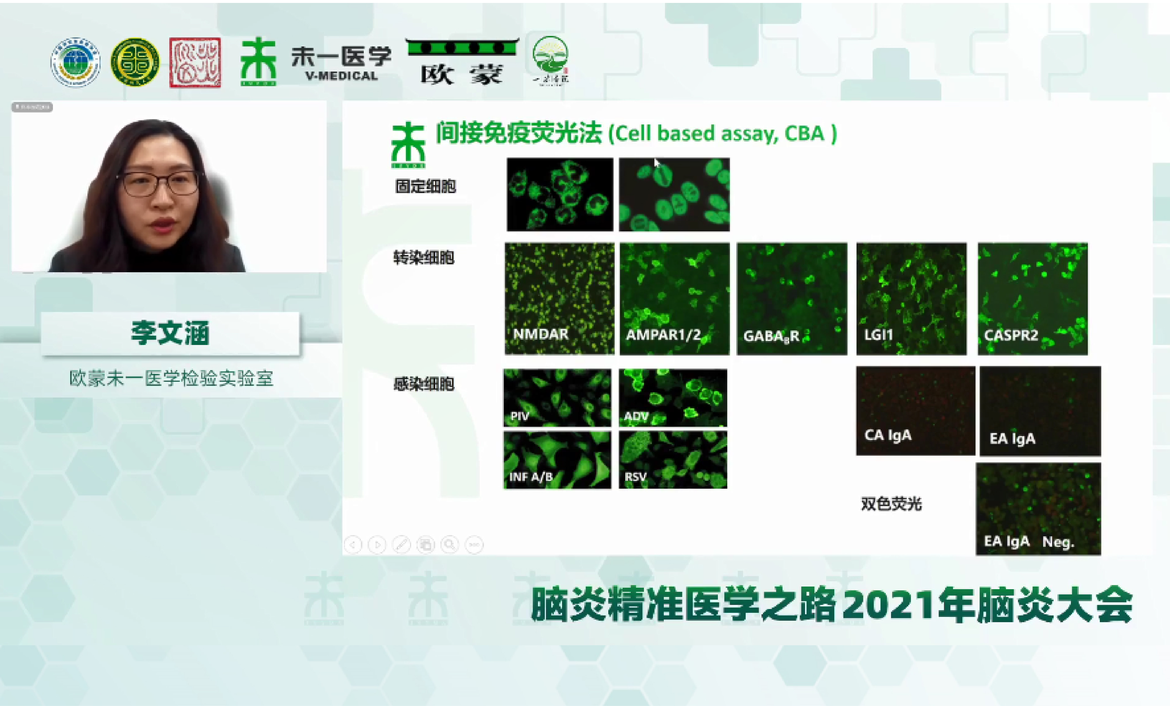 作為國內專注于自身抗體檢測的第三方檢驗實驗室,未一醫(yī)學李文涵博士從檢驗全程質量控制出發(fā),匯報了實驗室在檢驗前、檢驗中、檢驗后所做的工作。檢驗前在方法學選擇方面,未一醫(yī)學自2014年開始一直堅持神經自身免疫抗體CBA和TBA聯(lián)合檢測,已成為實驗室常規(guī)檢測策略,可提供更多信息,結果更精準。在檢驗中實驗室依據(jù)CNAS認證對試劑進行性能驗證,同時在IFA判讀方面建立了完善的培訓體系,判讀人員具有專家級能力;未一醫(yī)學實驗室已連續(xù)多年滿分通過歐蒙全球神經自身抗體室間質評。在檢驗后有專業(yè)的醫(yī)生對報告進行解讀,定期進行檢測結果統(tǒng)計分析,未一醫(yī)學實驗室與北京協(xié)和醫(yī)院神經科實驗室結果互認,在腦炎抗體陽性率和陽性抗體占比情況高度一致。通過2021年數(shù)據(jù)分析發(fā)現(xiàn),自身免疫性腦炎血清與腦脊液配對送檢陽性率明顯高于單樣本類型送檢,建議臨床首次送檢時血清和腦脊液平行檢測保證結果的準確性。中國醫(yī)科大學附屬盛京醫(yī)院馮娟教授作為本環(huán)節(jié)的主持嘉賓,結合報告的內容進行精彩總結。
