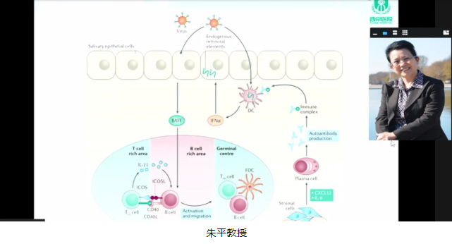 作為本次會議的另一線上報告專家,空軍軍醫大學(第四軍醫大學)西京醫院臨床免疫科主任朱平教授對干燥綜合征的診治和研究進展進行了詳細介紹。其中對干燥綜合征疾病的概述、診斷指標意義、結果的解讀等均進行了深入的講解。并結合多個現有的臨床診斷指南分析了干燥綜合征相關特異性自身抗體檢測及其他檢查手段在疾病診斷與鑒別診斷中的實際應用價值。最后,朱平教授強調了干燥綜合征是一種起病隱匿,涉及多學科,臨床表現多樣的慢性、系統性自身免疫病。因此,目前干燥綜合征疾病發病機制的研究以及合并多系統疾病的診治確實充滿了挑戰。
