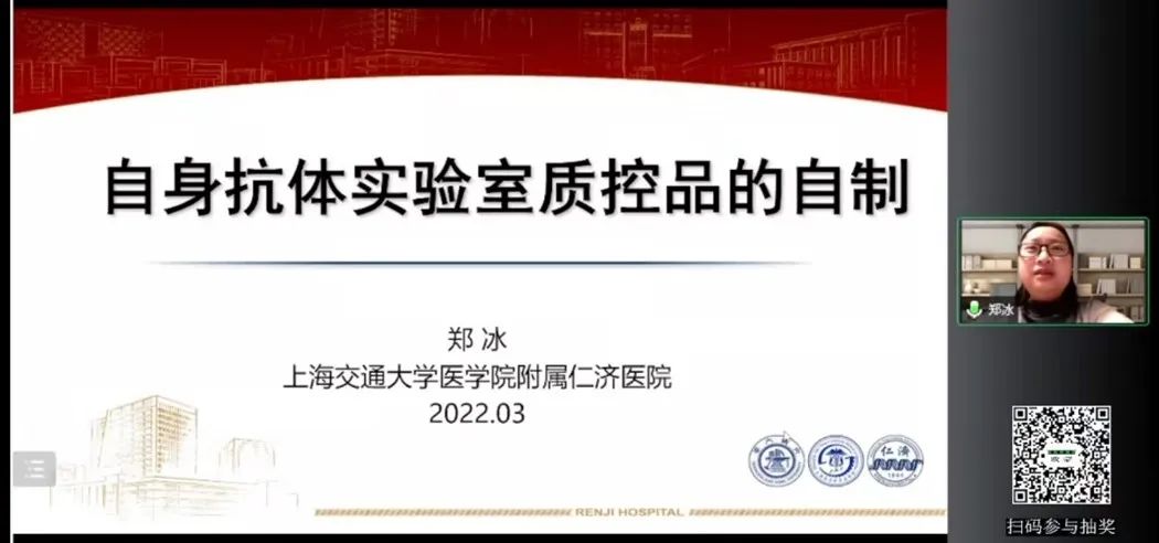 隨后,由鄭冰教授跟我們分享《自身抗體實驗室質(zhì)控品的自制》。首先,鄭冰教授指出質(zhì)控品是檢驗科實驗室保證檢測質(zhì)量的重要環(huán)節(jié)和手段。自制質(zhì)控品可用于室內(nèi)質(zhì)量控制,其聯(lián)合商品化質(zhì)控品可滿足臨床實驗室室內(nèi)質(zhì)量控制要求,避免和彌補全部使用商品化質(zhì)控品成本高、質(zhì)控項目不全面等缺點,實現(xiàn)檢驗科節(jié)約成本和提高檢驗質(zhì)量的要求。接著介紹了自制質(zhì)控品可參照ISO指南80、體系文件CNAS-GL005,并列舉了兩個指南中自制質(zhì)控品的流程及方案。最后,鄭教授用實際案例講述了質(zhì)控品的評估和使用,希望通過今天的介紹可以讓老師了解質(zhì)控品的自制并應用在自己科室。