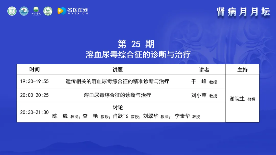 今天的主題是溶血尿毒綜合征的診斷與治療,邀請了在該領域有很深造詣的專家進行交流。