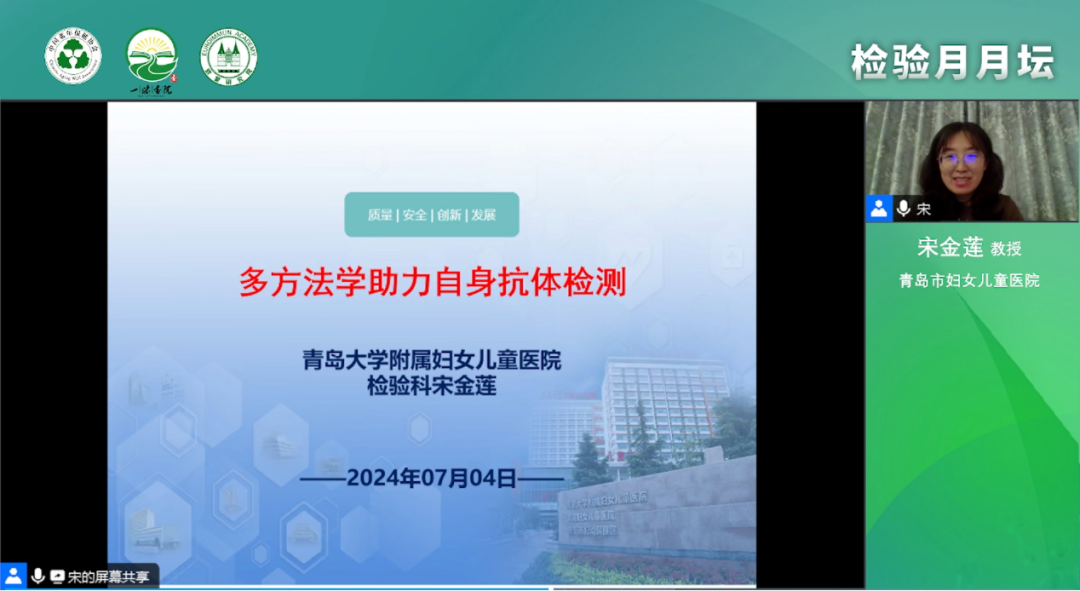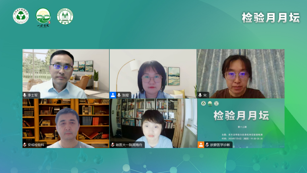 2024年7月4日(周四),中國老年保健協會、一味書院主辦的【檢驗月月壇】系列會議第13期“多方法學助力自身抗體實驗室檢測”全國直播會在線上如期召開。大連醫科大學附屬第一醫院李士軍教授擔任大會主席并致辭,遼寧省中醫院張程教授,以及青島市婦女兒童醫院宋金蓮教授擔任本次會議的講者嘉賓。同時大會還邀請了中國中醫科學院廣安門醫院安成教授、哈爾濱醫科大學附屬第一醫院周海舟教授作為本次會議的討論嘉賓。幾位專家主要圍繞“多方法學助力自身抗體實驗室檢測”進行了深入的交流和討論。