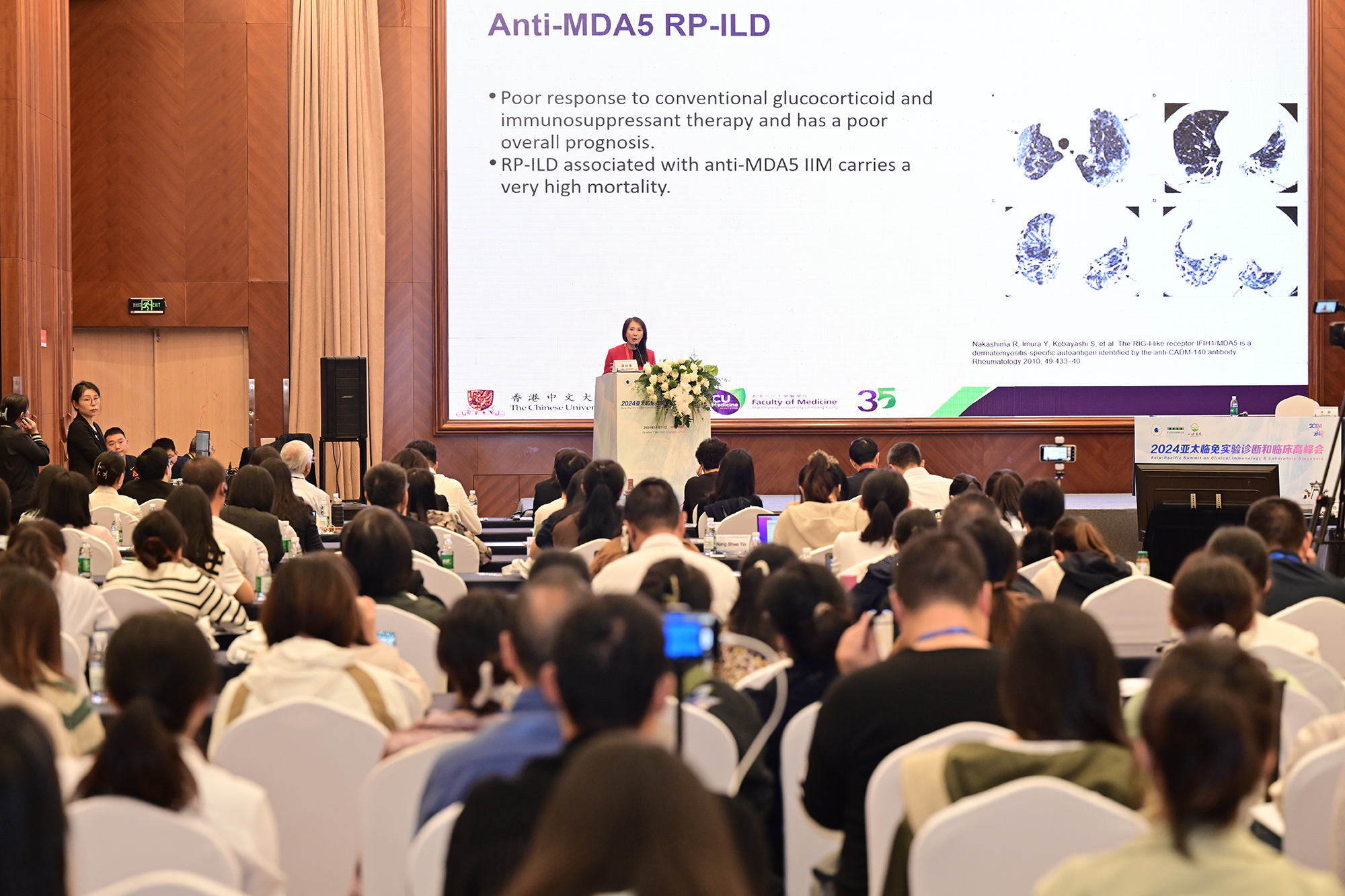 作為亞太地區(qū)免疫領(lǐng)域的高端學(xué)術(shù)盛會,“2024亞太臨免實驗診斷和臨床高峰會”聚焦風(fēng)濕免疫疾病及相關(guān)呼吸系統(tǒng)疾病的最新研究進(jìn)展、臨床診療經(jīng)驗、診斷方法與策略等,涉及 CTD-ILD(結(jié)締組織病相關(guān)性間質(zhì)性肺病)、CTD-PAH(結(jié)締組織病相關(guān)性肺動脈高壓)等,以及自身免疫疾病中的疑難復(fù)雜疾病,如系統(tǒng)性小血管炎、大動脈炎和皮肌炎等。