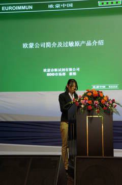 此外,歐蒙還邀請了國內(nèi)外著名的變態(tài)反應病專家,世界變態(tài)反應學會和歐洲變態(tài)反應學會會員,沈陽軍區(qū)總醫(yī)院主任醫(yī)師林小平教授就《免疫印跡法檢測過敏原臨床應用》做了精彩的演講。林教授指出:血清學檢測過敏原可以避免點刺法檢測不良的影響因素,而免疫印跡法血清學檢測過敏原具有一次檢測多項、采血量少、配套自動化儀器、性價比高等特點,必將廣泛應用于臨床。